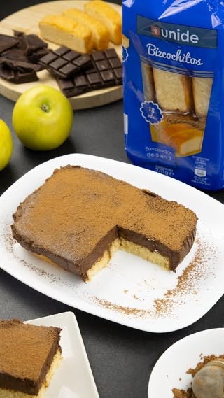 Se colocan los bizcochos en capas, se añaden láminas de manzana y se cubre con una mezcla de chocolate caliente y leche. Va a la nevera, ¡y listo!